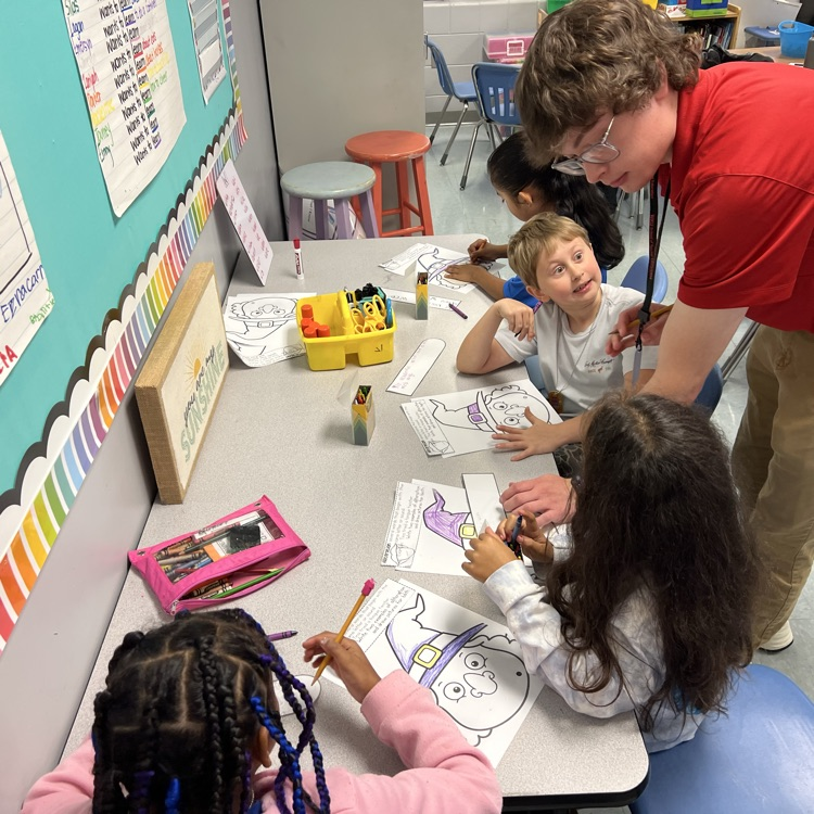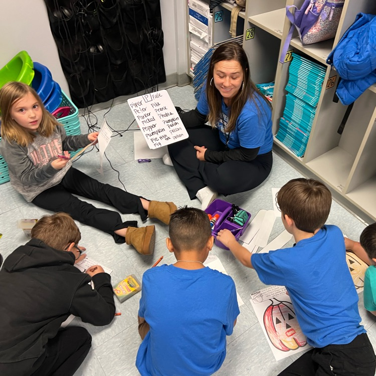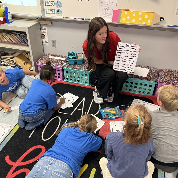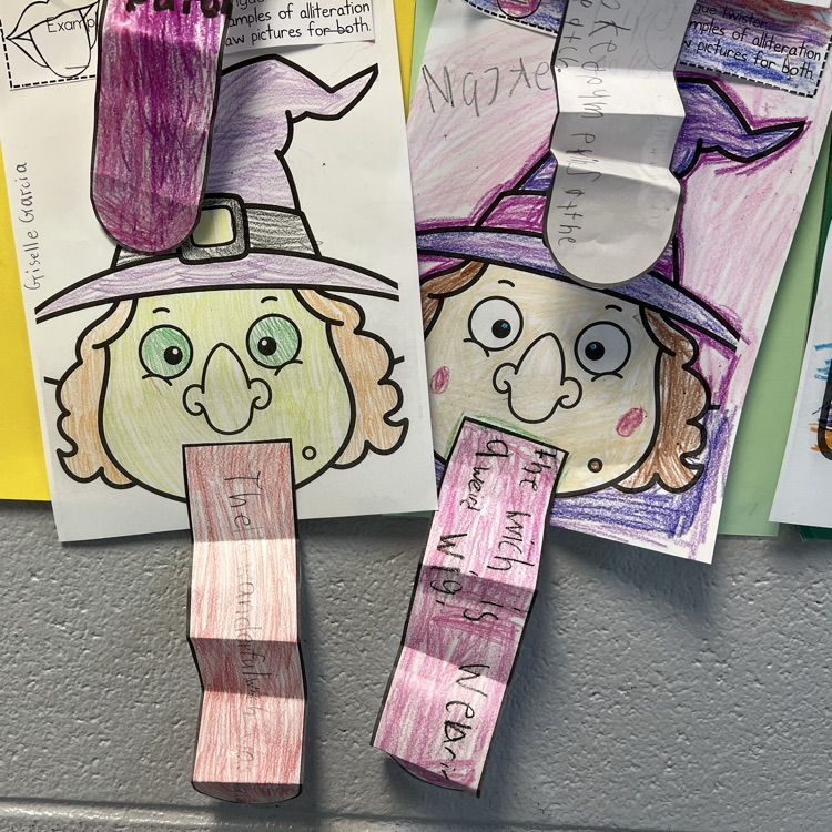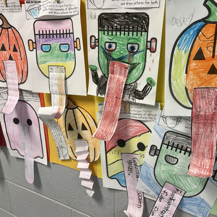 Mrs. Feese's reading class learned about Alliteration this week. Our awesome WKU students helped us create Halloween tongue twisters using our alliteration skills! 🧙♀️ 👻 🎃